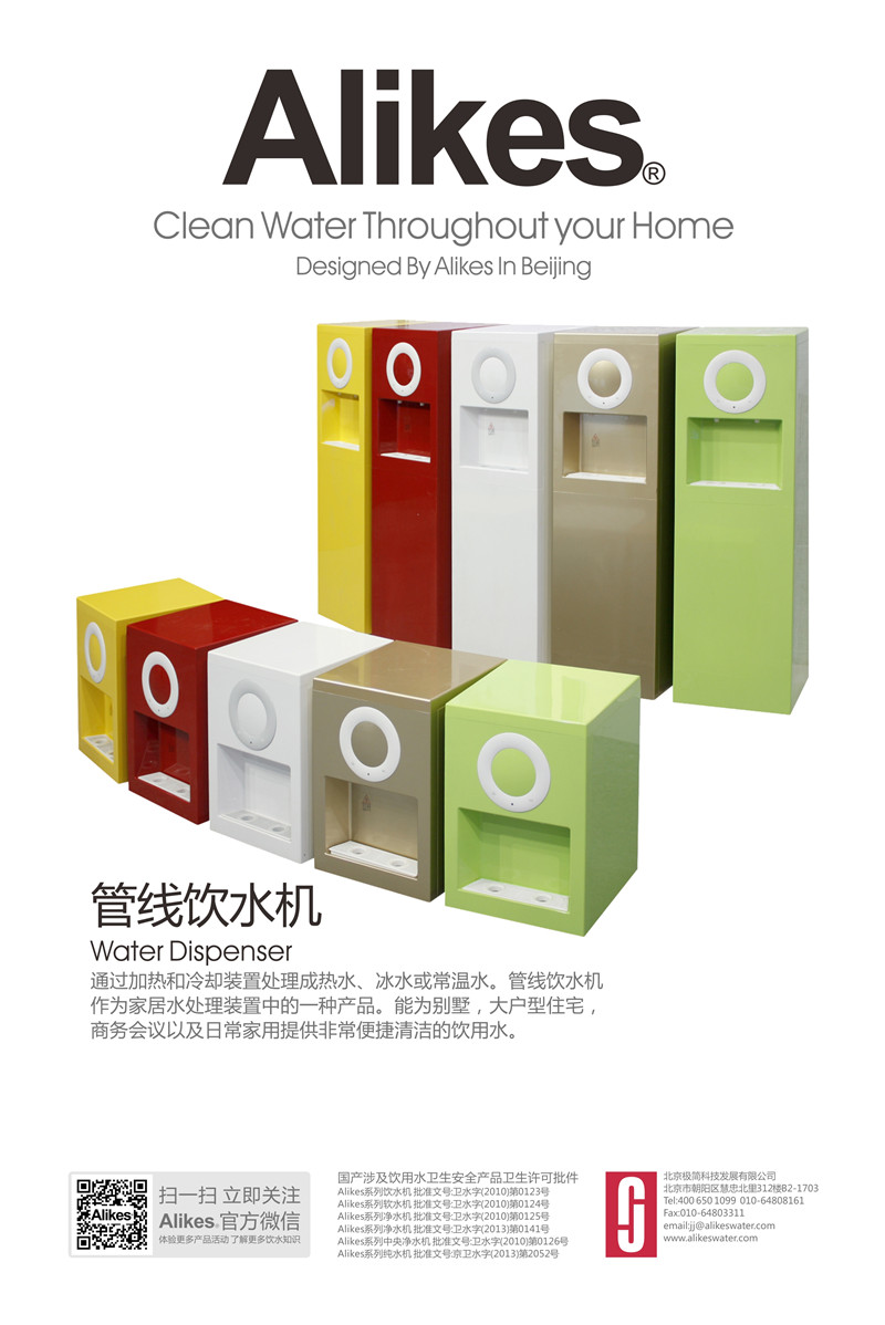 Alikes管線機可配合終端凈水機使用,也可以利用自帶的濾芯(選配)進(jìn)行水處理凈化。凈化后的水經(jīng)PE輸水管連接到機內(nèi)的密閉儲水罐,通過加熱和冷卻裝置處理成熱水、冰水或常溫水。管線飲水機作為家居水處理裝置中的一種產(chǎn)品,能為別墅、大戶型住宅、商務(wù)會議以及日常家用提供非常便捷清潔的飲用水。