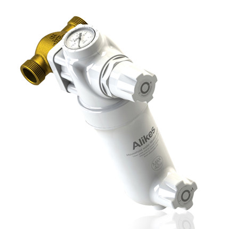 Alikest穩(wěn)壓前置過(guò)濾器萬(wàn)向銅口,安裝方向可安按照水流方向調(diào)節(jié),管道材質(zhì)采用的是無(wú)鉛銅 ,穩(wěn)壓裝置能通過(guò)壓力表監(jiān)測(cè)出水壓力,調(diào)壓旋鈕可以******控制水壓功能。通過(guò)注塑一體包膠不銹鋼過(guò)濾網(wǎng),過(guò)濾精度為20微米。裝在其他水處理設(shè)備的前端提供預(yù)置的凈化處理,延長(zhǎng)設(shè)備的使用壽命。過(guò)濾器濾網(wǎng)會(huì)截留水中的雜質(zhì),當(dāng)雜質(zhì)積留到一定程度,過(guò)濾器內(nèi)的水壓會(huì)較正常值偏高,通過(guò)打開(kāi)過(guò)濾器下端的排污沖洗閥,利用水壓沖力,將過(guò)濾器內(nèi)的污物沖出,恢復(fù)過(guò)濾效能。