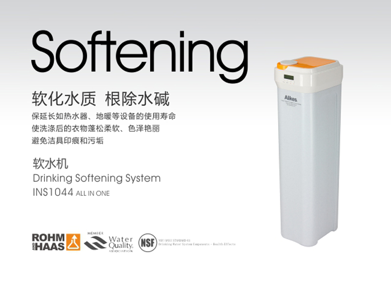 軟水機(jī)是將軟水控制器與玻璃鋼壓力桶結(jié)合,通過(guò)離子交換樹(shù)脂去除水中的鈣、鎂離子(即水堿),降低水質(zhì)硬度的水處理設(shè)備。軟化水屬于生活用水,可以延長(zhǎng)如熱水器、地暖等設(shè)備的使用壽命。使洗滌后的衣物蓬松柔軟。避免潔具印痕和污垢。
