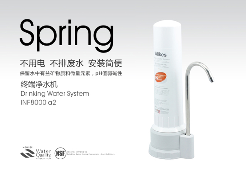 Alikes終端凈水機利用市政管道自來水的壓力驅(qū)動水流,通過獨特的濾芯來達到生飲的標準。安裝簡易,即插即飲。去除水中的泥沙、******、鐵銹、懸浮物、有害重金屬、余氯異色和異味。不需用電,不產(chǎn)生廢水,即用即飲,不需儲水罐避免二次污染 , 確保飲水健康。是凈水機中的高端產(chǎn)品,適用于別墅、******商務樓、******住宅樓。滿足高端人群對高品質(zhì)飲水的需求 。