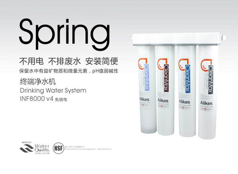 Alikes終端凈水機(jī)利用市政管道自來水的壓力驅(qū)動水流,通過獨特的濾芯來達(dá)到生飲的標(biāo)準(zhǔn)。安裝簡易,即插即飲。去除水中的泥沙、******、鐵銹、懸浮物、有害重金屬、余氯異色和異味。不需用電,不產(chǎn)生廢水,即用即飲,不需儲水罐避免二次污染 , 確保飲水健康。是凈水機(jī)中的高端產(chǎn)品,適用于咖啡店,水吧商用,別墅、******商務(wù)樓、******住宅樓家用。滿足高端人群對高品質(zhì)飲水的需求 。